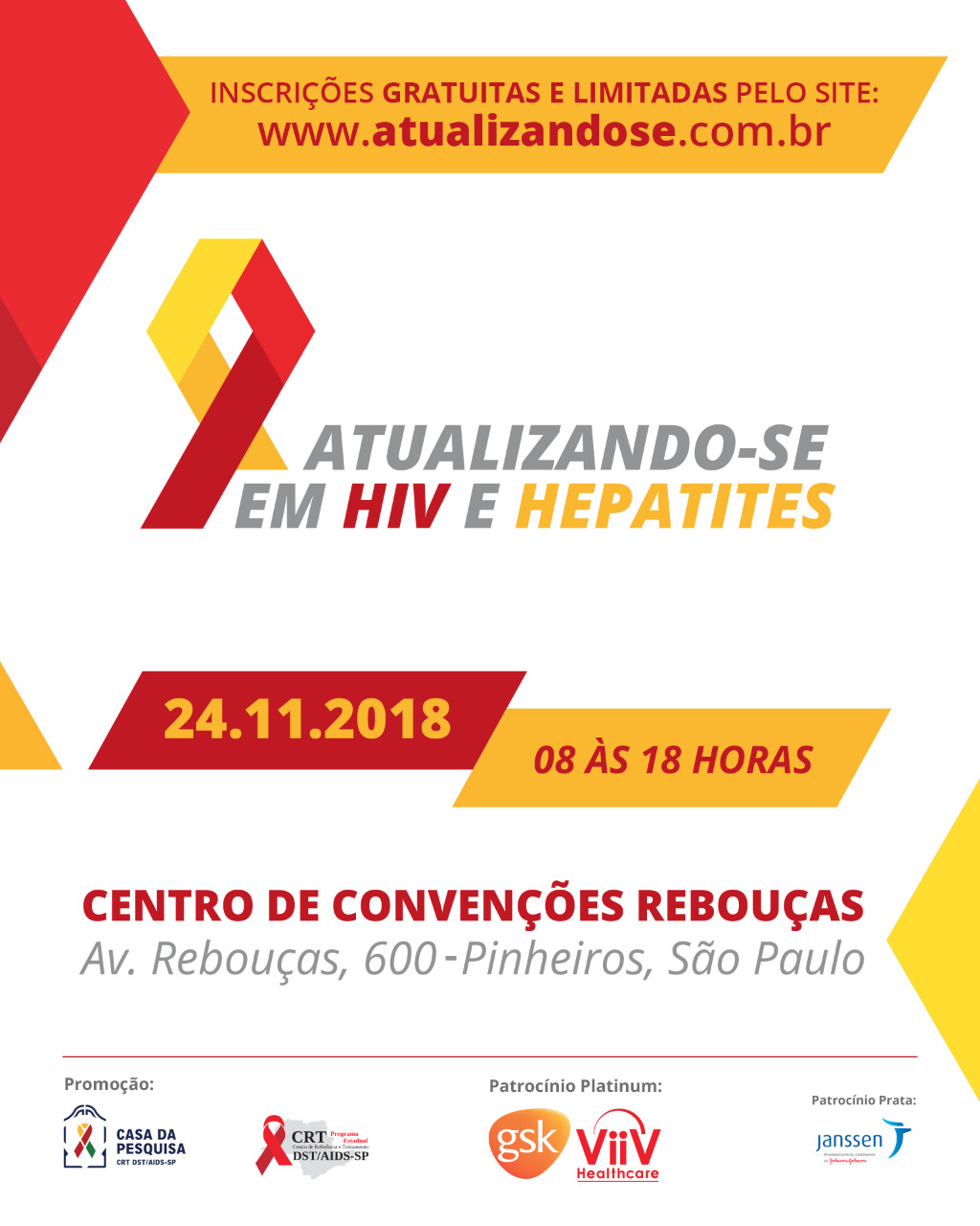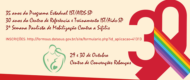 Este ano realizaremos um grande evento para celebrar os 30 anos do Centro de Referência e Treinamento em IST/AIDS, os 35 anos do Programa Estadual de IST/Aids e a 3ª Semana Paulista de Mobilização Contra a Sífilis, nos dias 29 e 30 de outubro, no Centro de Convenções Rebouças, em São Paulo.
