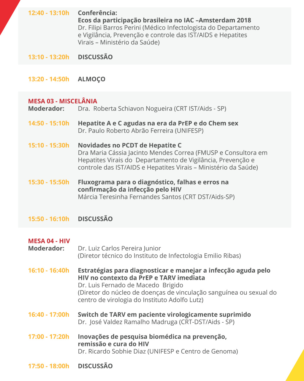 15h00- PrEP, PEP e estigma: LGBT, juventude, pessoas usuárias de drogas e trabalhadores sexuais;