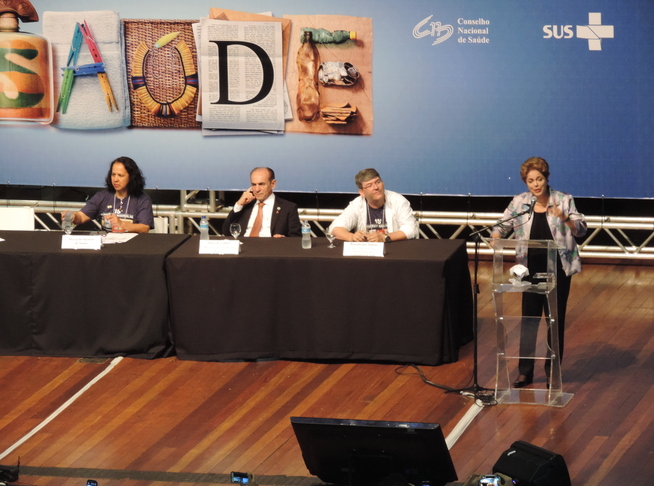 ¿Quando a gente olha para o SUS, a gente sabe que há conquista. Temos que valorizar o SUS todo dia, 24 horas por dia. E isso significa garantir vacinas, transplantes, vigilância sanitária e epidemiológica, tratamento das pessoas com deficiência, medicamentos gratuitos ou com desconto. Tudo isso é a complexa articulação de pessoas que garantem o SUS, e que mudam para melhor a vida dos brasileiros¿, defendeu a presidenta Dilma Rousseff, durante a Plenária Final da 15ª CNS.