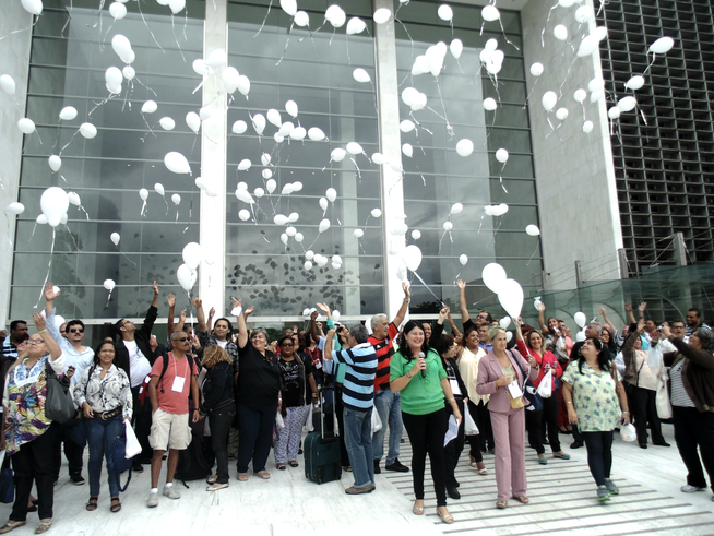 No encerramento, houve a soltura de 300 balões brancos, como símbolo da luta pelo SUS, com a leitura, pela Coordenadora Estadual de Plenária (SP), Ana Lúcia Mattos Flores, do texto abaixo.
