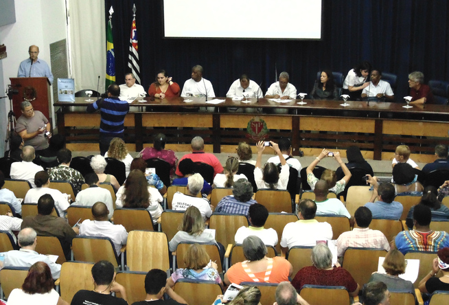 A Plenária Popular Sudeste, realizada nos dias 21 a 22 de março, na Assembleia Legislativa do Estado de São Paulo (ALESP), foi um sucesso. Com o apoio do Conselho Estadual de Saúde de São Paulo, o evento reuniu cerca de 400 pessoas, entre Conselheiros de Saúde e representantes de movimentos populares, religiosos, de mulheres, idosos, da população negra, quilombola, LGBT, entre outros, dos Estados de São Paulo, Minas Gerais, Rio de Janeiro e Espírito Santo.