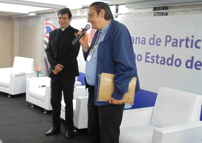 Na ocasião, o Conselheiro Estadual de Saúde Padre João Inácio Mildner apresentou o convidado especial, Padre Juarez de Castro, que falou sobre a representatividade e legitimidade para os Conselheiros de Saúde participantes. "É com alegria que temos entre nós uma pessoa muito fantástica, que tem um grande amor pela vida, um grande amor pelo povo - um grande comunicador, um grande líder não só da Arquidiocese de São Paulo, mas de todo o Brasil, que tem muito a oferecer no tema da participação - e é pela participação que nós temos a força para transformarmos o Sistema de Saúde naquele SUS que todos nós sonhamos, um SUS que gere vida e esperança para o nosso povo", destacou o Padre João.