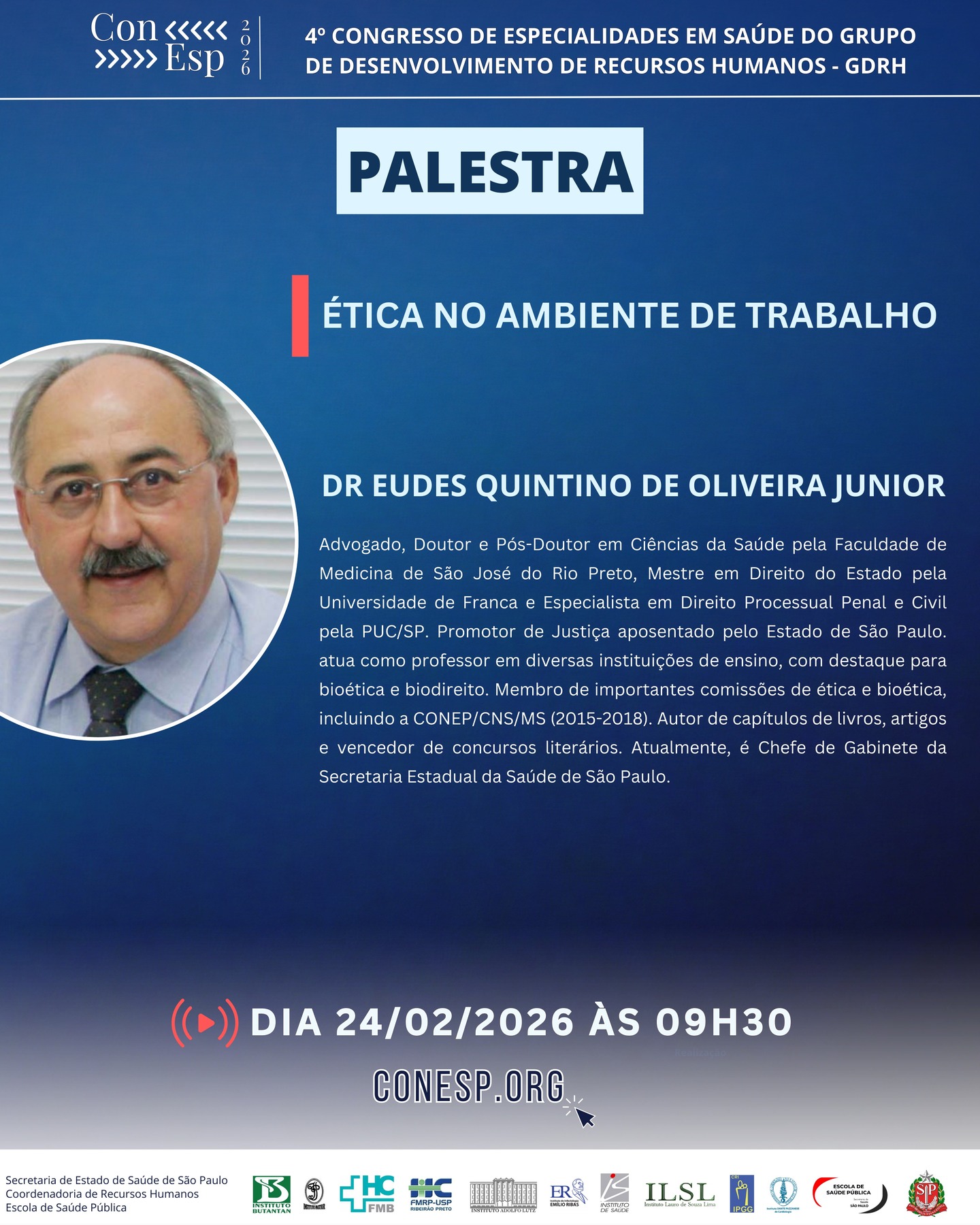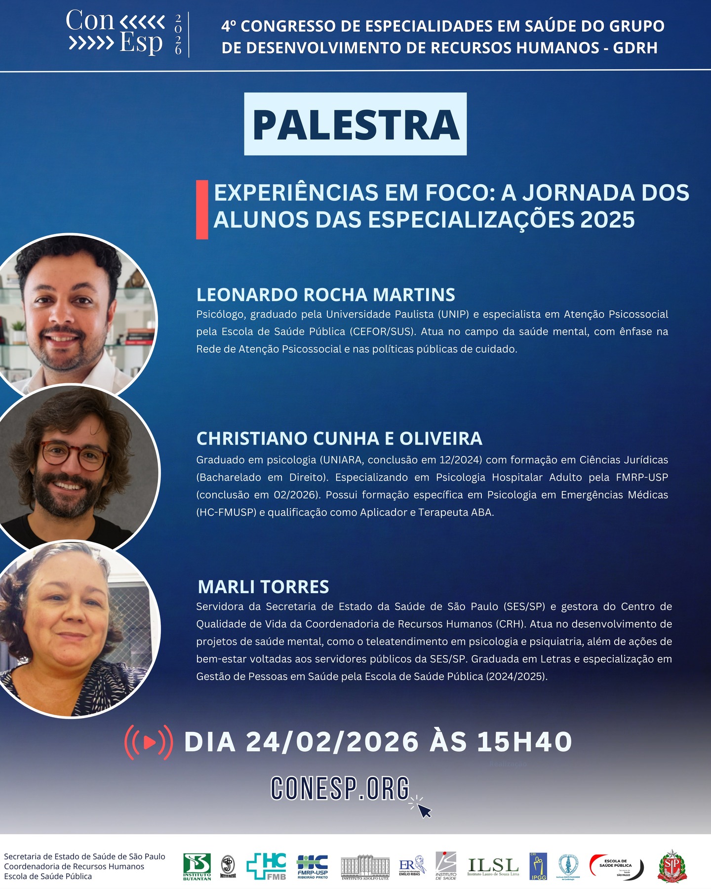 O 4º Congresso de Especialidades em Saúde do GDRH aconteceu nos dias 24 e 25 de fevereiro de 2026, online. |