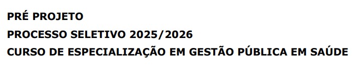 ESPECIALIZAÇÃO GESTÃO PÚBLICA EM SAÚDEINSCRIÇÕES TEMPORARIAMENTE SUSPENSAS