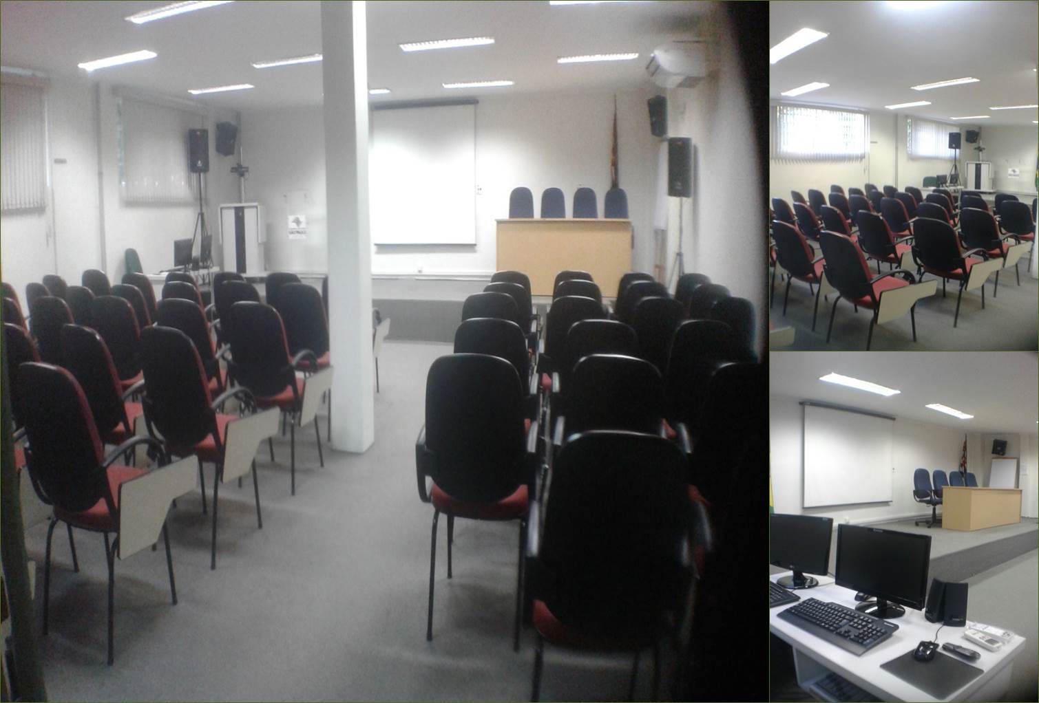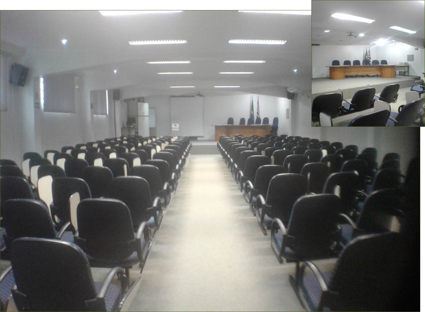 Capacidade para 140 pessoas Equipado com: Poltronas fixas e estofadas do tipo universitária; Equipamentos de multimídia, microfones e aparelho de som. |