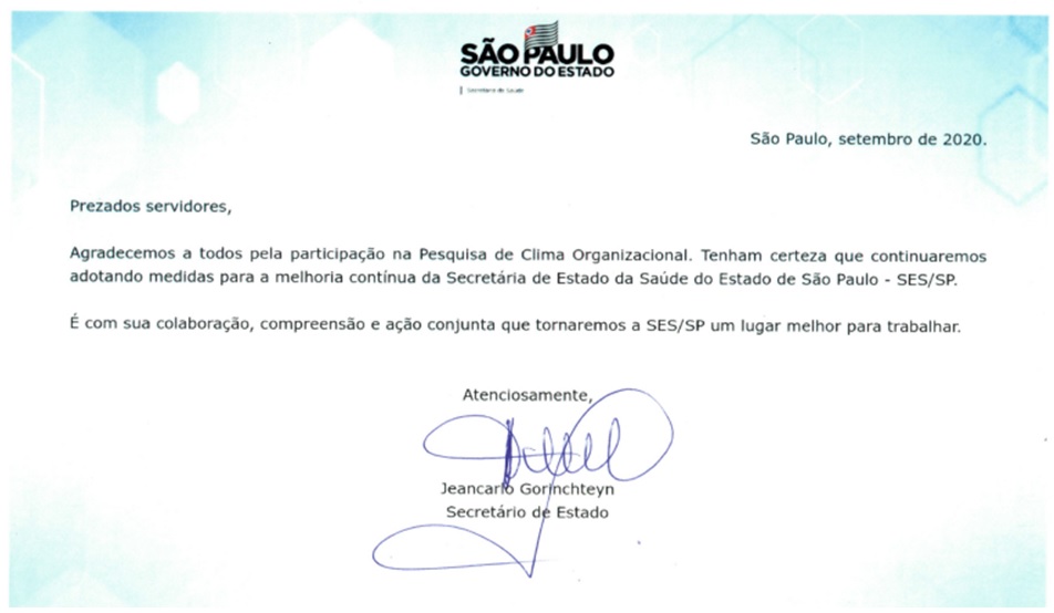 Pesquisa de Clima Organizacional Confira as reuniões realizadas. Reunião Pesquisa de Clima Organizacional CRS/CCD - 01/07/2020 Reunião Pesquisa de Clima Organizacional CSS - 02/07/2020 Carta de Agradecimento - Encerramento Pesquisa de Clima Organizacional
