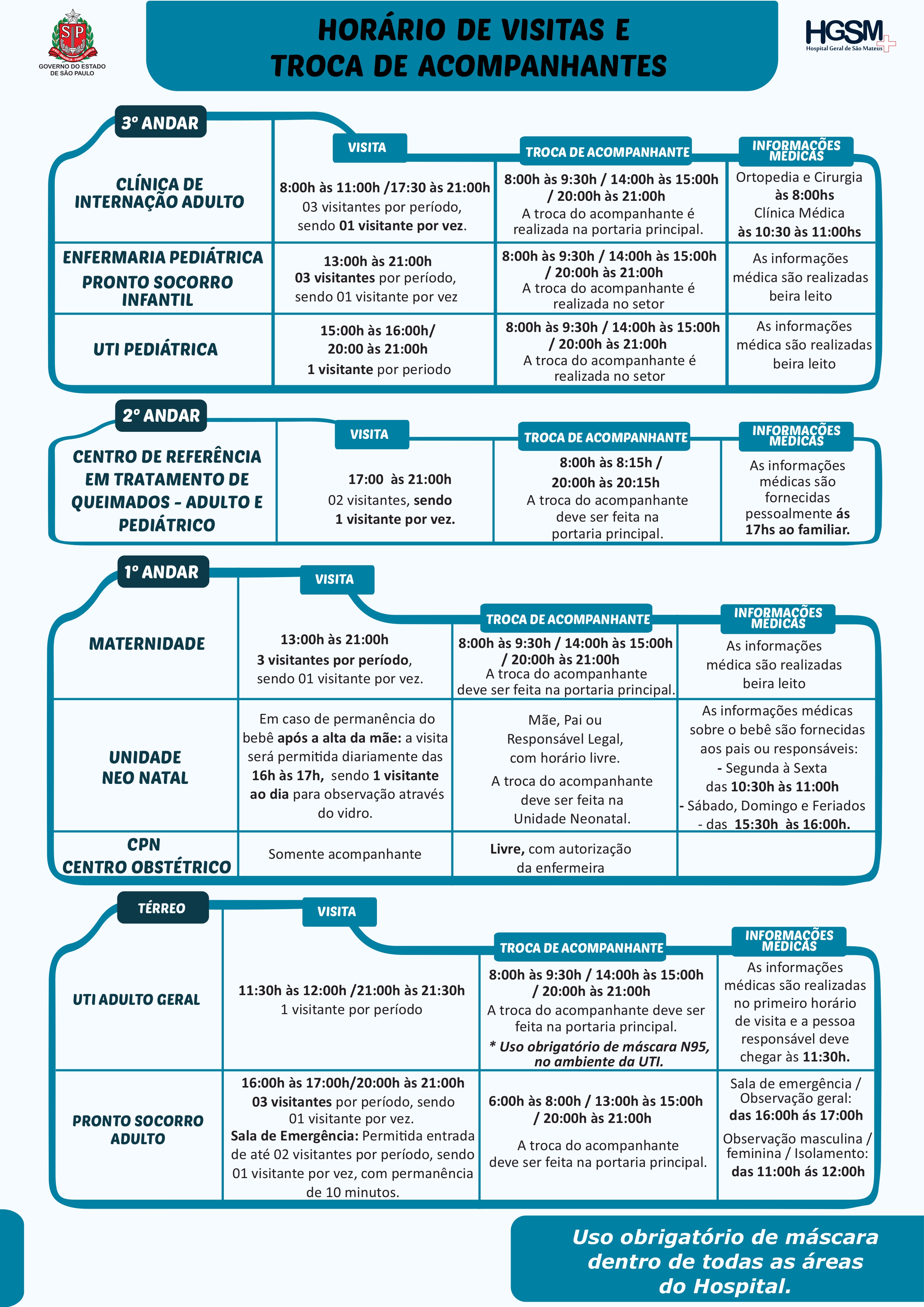 Consulte o horário de visitas à pacientes internados no HGSM