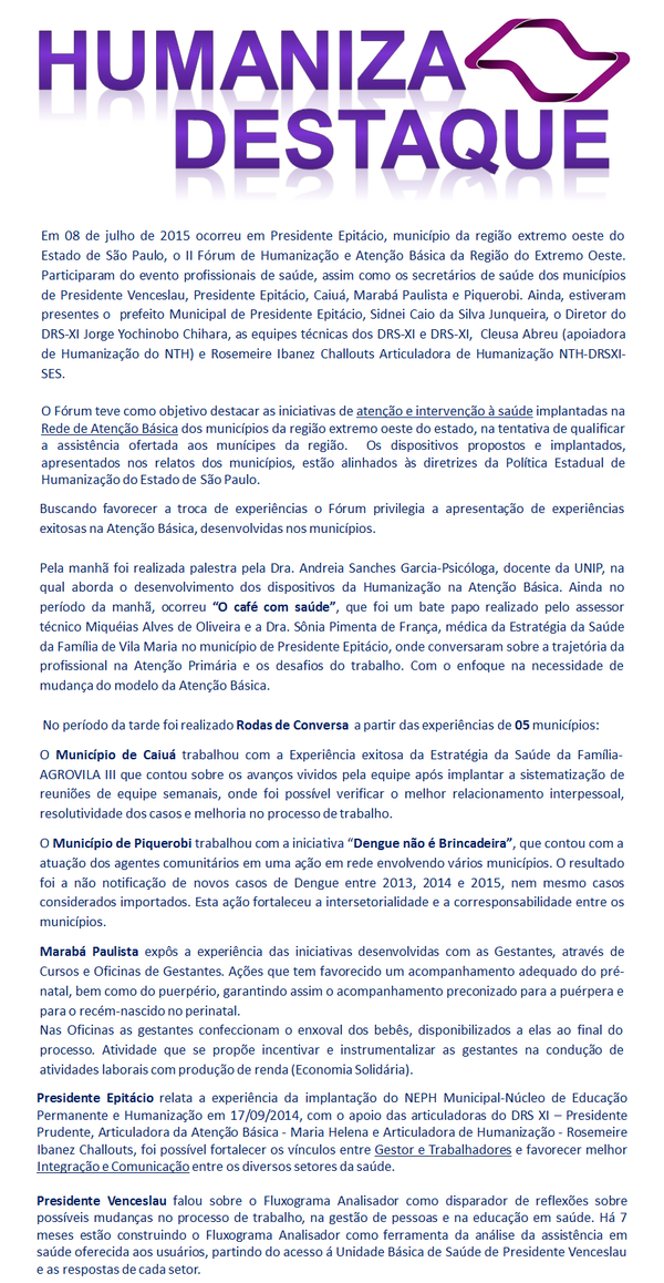 II Fórum de Humanização e Atenção Básica da Região do Extremo Oeste
