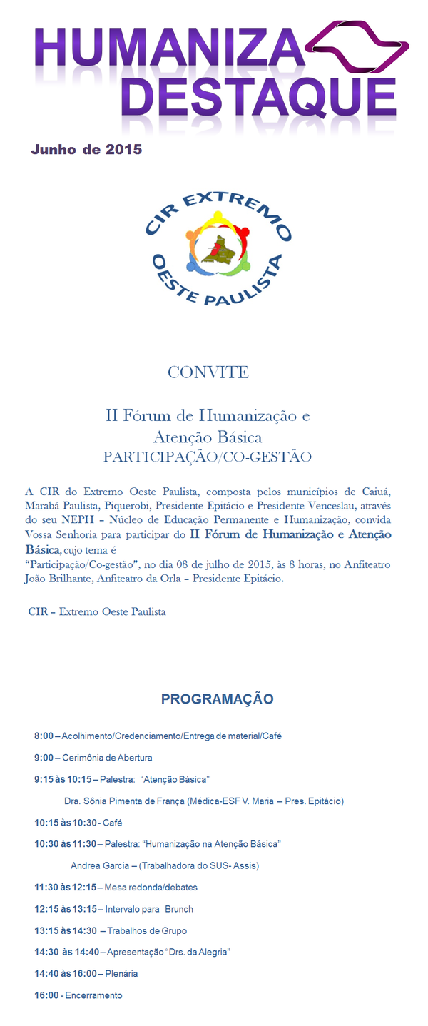II Forum de Humanização na Atenção Básica Oeste Paulista