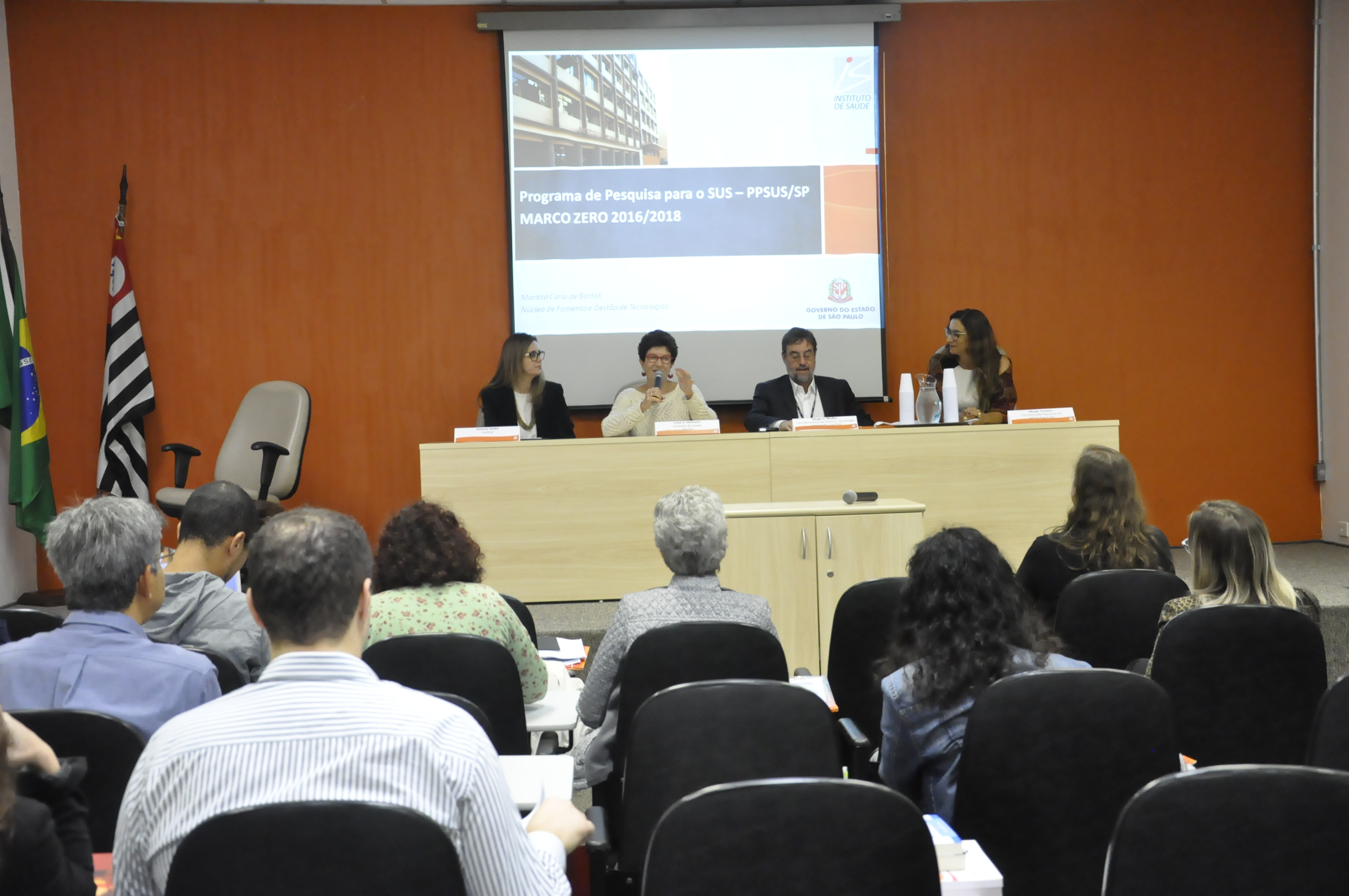 No dia 11 de maio, o Instituto de Saúde (IS) realizou o evento "Marco zero PPSUS-SP 2016/2018", coordenado pela diretora do Núcleo de Fomento e Gestão de Tecnologias de Saúde do Instituto, Maritsa Carla de Bortoli, que teve por objetivo a apresentação dos projetos contemplados na chamada pública PPSUS-SP 2016/2018 para gestores.