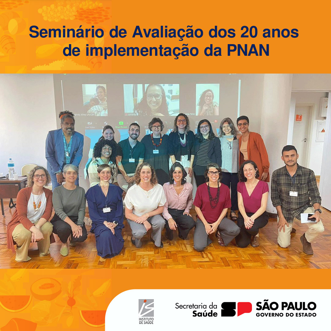 Na última terça-feira, dia 03/10, o Instituto de Saúde promoveu o "Seminário de Avaliação dos 20 anos de implementação da Política Nacional de Alimentação e Nutrição (PNAN)". Este evento contou com a participação de figuras importantes do Ministério da Saúde, incluindo o Diretor do Departamento de Promoção da Saúde - DEPROS, a Coordenadora-Geral de Alimentação e Nutrição - CGAN - Kelly Alves, técnicos da CGAN e do DEPROS e Inês Rugani, docente da Universidade Estadual do Rio de Janeiro, juntamente com a equipe de pesquisadoras e bolsistas do projeto "Avaliação dos 20 anos de implementação da Política Nacional de Alimentação e Nutrição (PNAN): avanços e desafios".