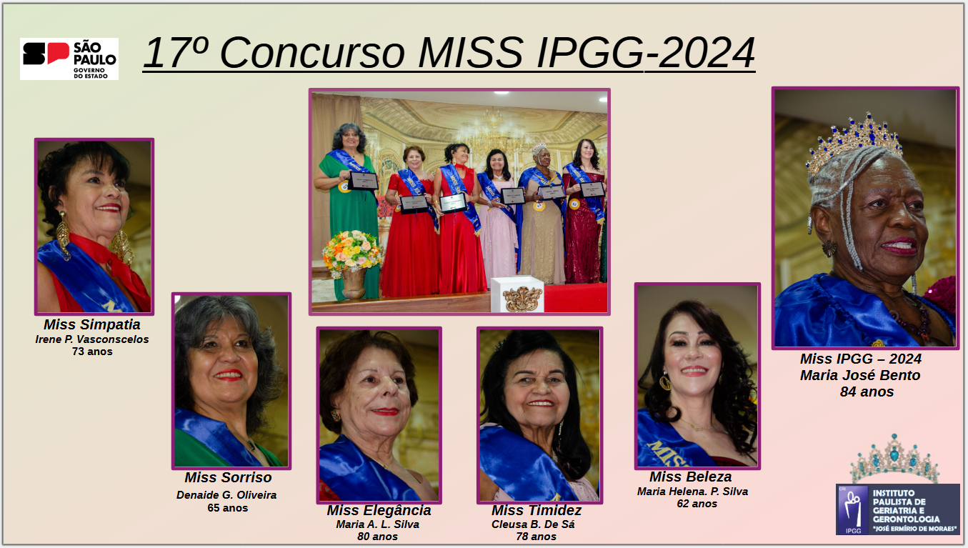 No dia 17/05 o IPGG realizou o 17º Concurso Miss, ressaltando a importância do combate ao etarismo, a valorização do protagonismo da mulher idosa, aumento da autoestima e socialização.