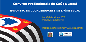 37º CIOSP Encontro de Coordenadores de Saúde Bucal do Estado de SP Data: 30/01/2019 Horário: 09h00 às 17h00 Para visualizar o convite do evento clique aqui. Para acessar a programação do evento clique aqui.